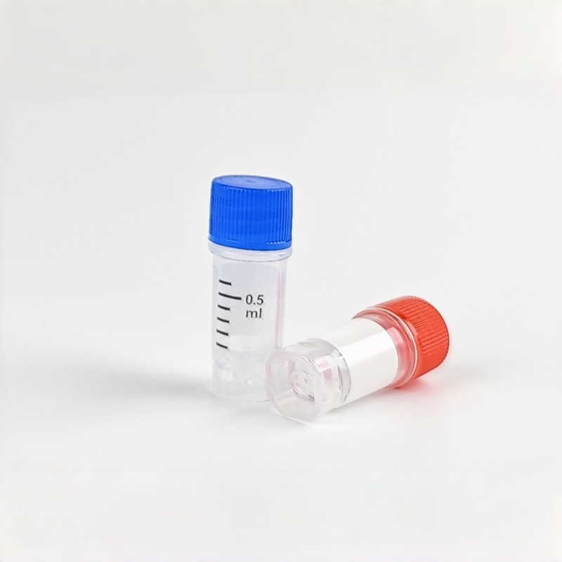 Viales criogénicos individuales de plástico de 2 ml. Tubos criogénicos. Consumible de laboratorio para la conservación celular.