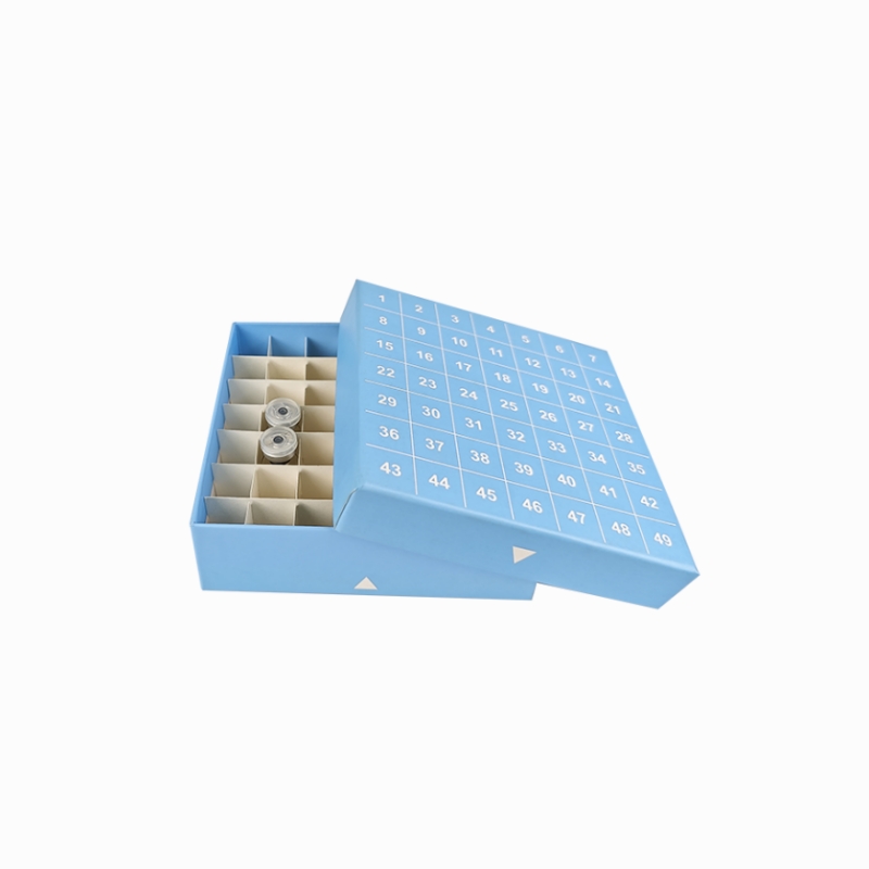 | YB-CBCB49 | 49 Well Cardboard Cryo box | 2 inch | 133*133*42mm | Blue | Blue surface matte film | 6pcs/bag, 10bags/carton |